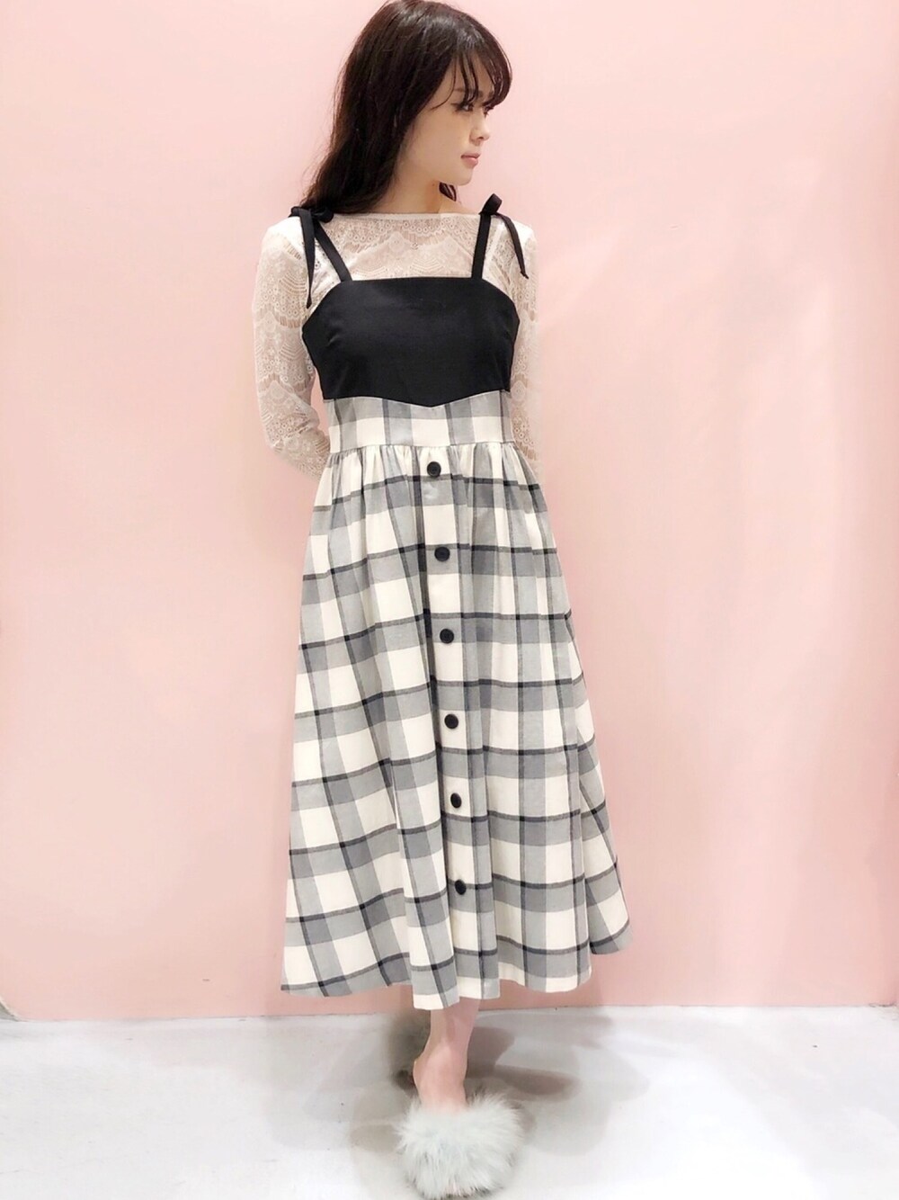 肩をリボンで結ぶキャミドレス👗🎀 甘いテイストの中に大人っぽさを感じるBLACKに一目惚れしました…❤︎ レーストップスと合わせると、今すぐ着られる秋コーディネートが楽しめます☺️