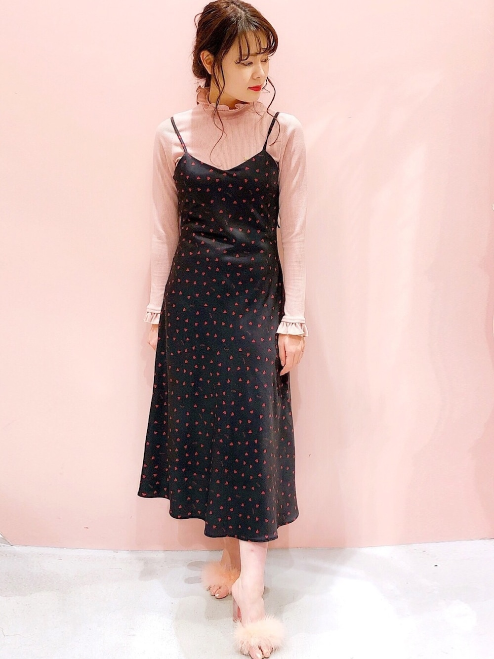 大好きなハート柄は必ず毎シーズン欲しくなります…💕 今回はブラックのワンピを選びました☺️ シックにも、大人っぽいガーリーにも着こなせる万能なワンピです👗💕