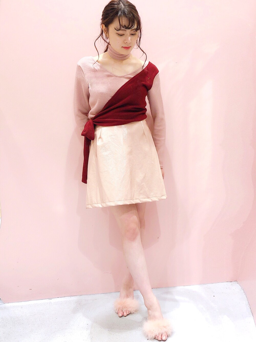 ゆずのニット/セーター「バイカラーリボンチョーカーニット」を使ったコーディネート