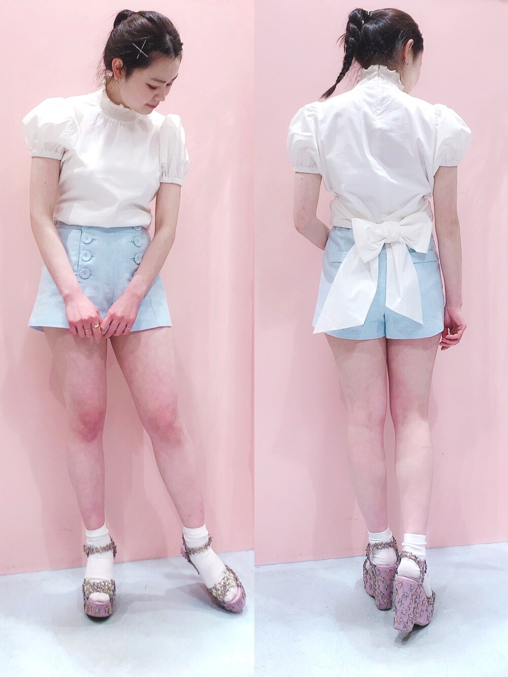 ゆずのシャツ/ブラウス「2wayリボンパフトップス」を使ったコーディネート