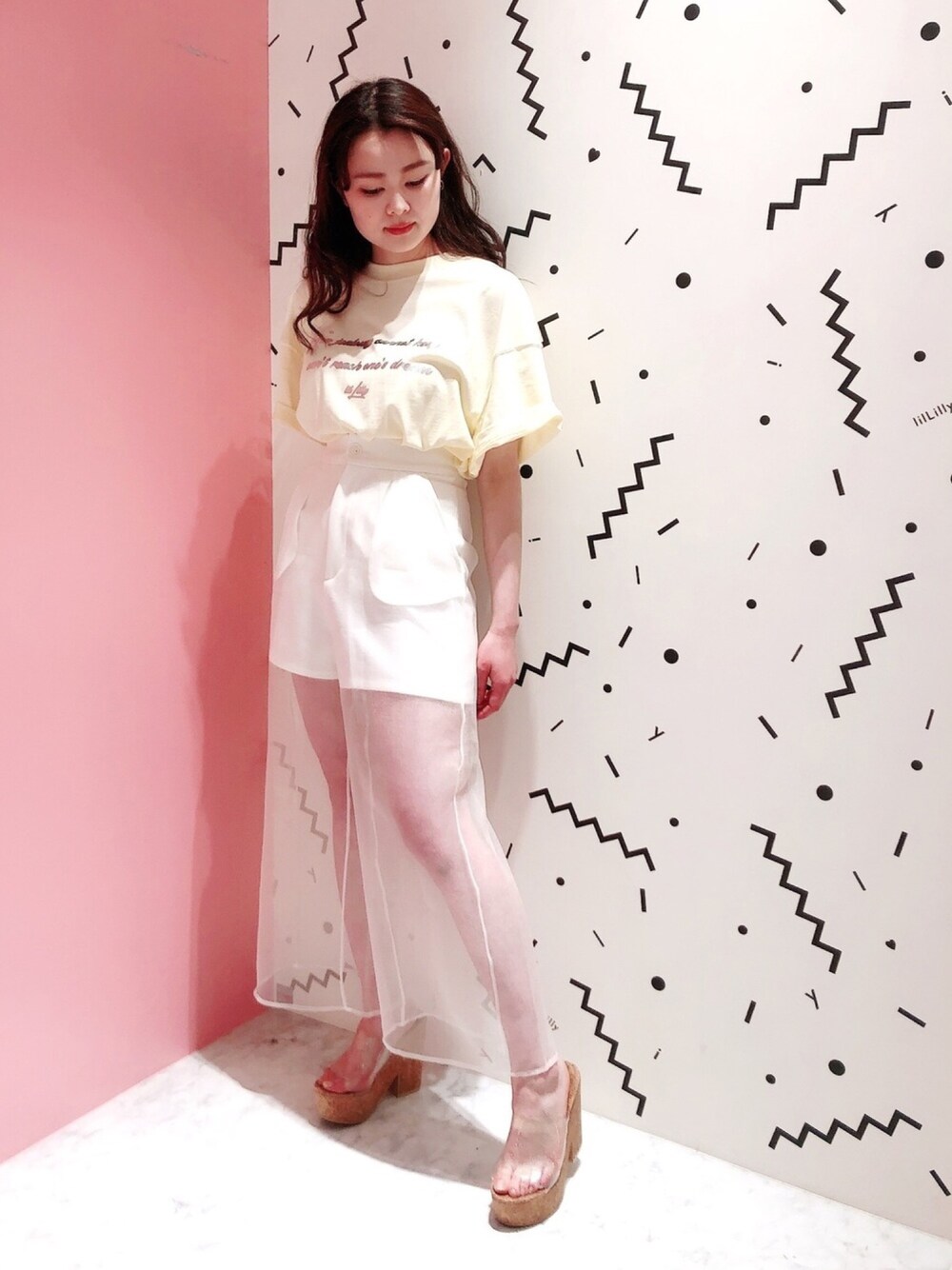 爽やかでジューシーなイメージの夏🍋🥝 をイメージしてコーデしました✨ 夏がとっても楽しみで、Tシャツコーデを考えるとワクワクします☺️ とってもお気に入りのオーバーサイズTシャツはイエローをチョイス☀️ シースルーのパンツと合わせて他とは違う女の子スタイルに挑戦しました💛