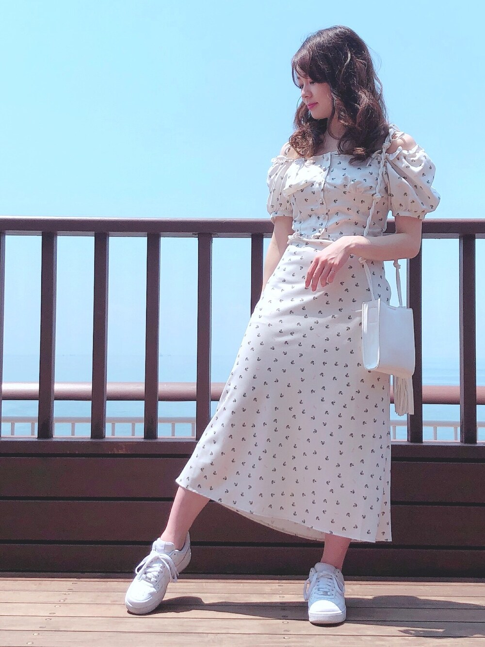 今1番お気に入りのlilLilly×philly chocolateコラボセットアップ🌷 スニーカーを合わせてカジュアルに👟 オフショルにすると程よい肌見せができて🙆♀️