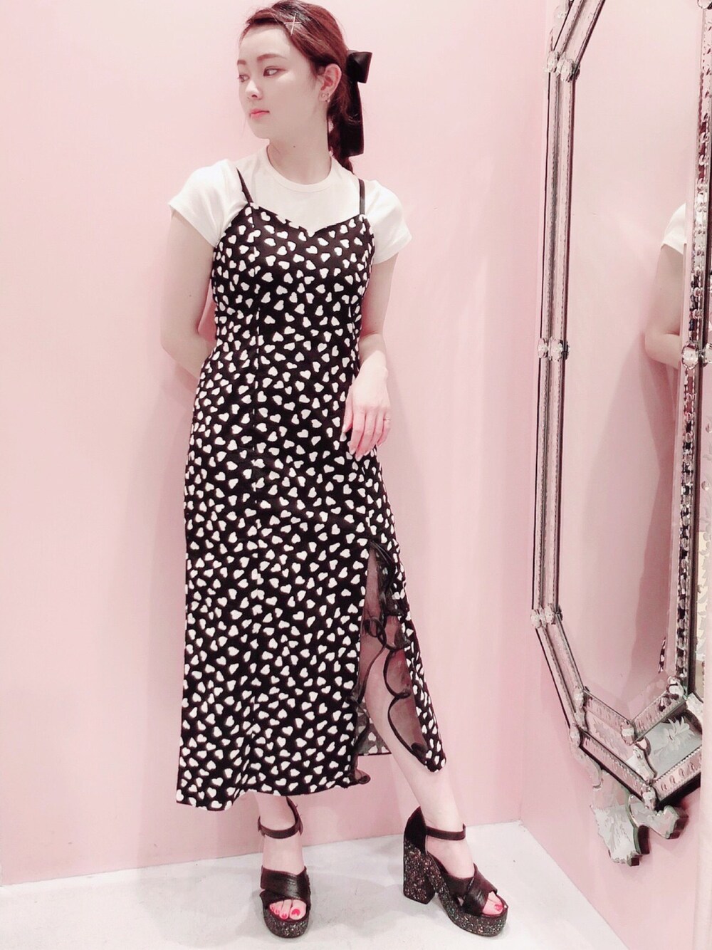 ゆずのワンピース「ハートロングキャミドレス」を使ったコーディネート