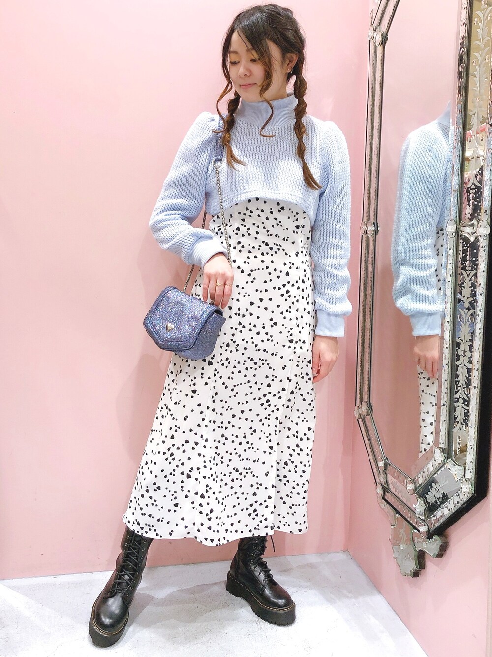 ワンピースにショートニット合わせ… 憧れコーデに挑戦してみました! BLUEの色味が最高に可愛いです💙