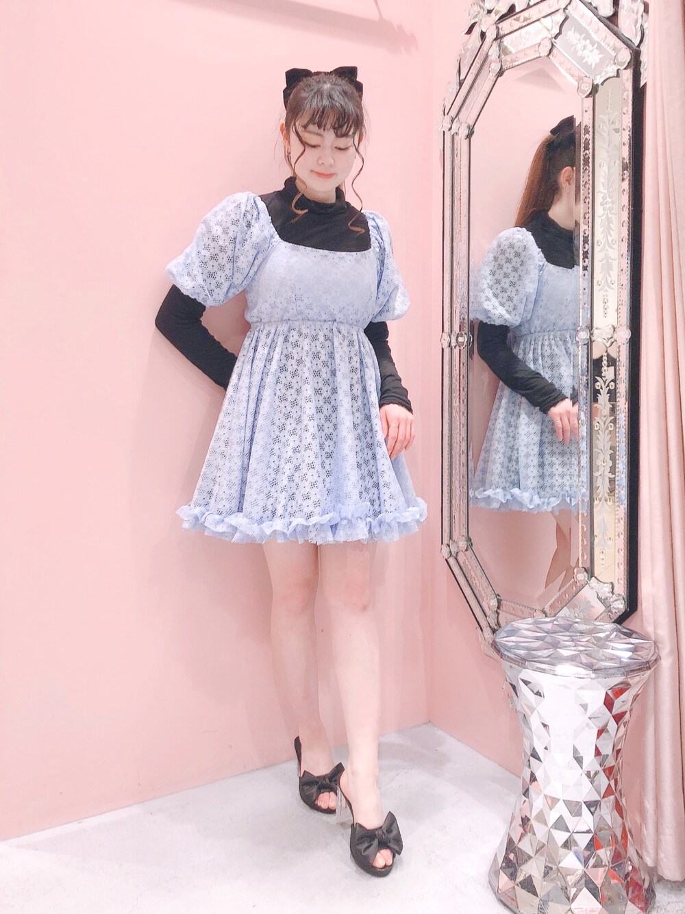BLUE新鮮ですがデザインが可愛いので挑戦したくなりました…🤍 ふわっとした裾のデザインと総レース。 甘いが気分なので胸キュンです。 チュニックの着回しが楽しみ☺️