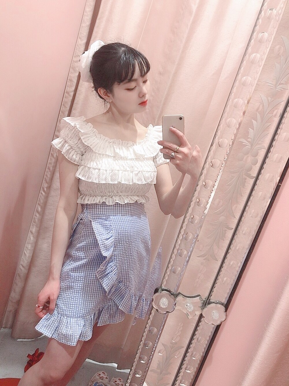 ゆずのシャツ/ブラウス「オーガンジーフリルオフショルトップス」を使ったコーディネート