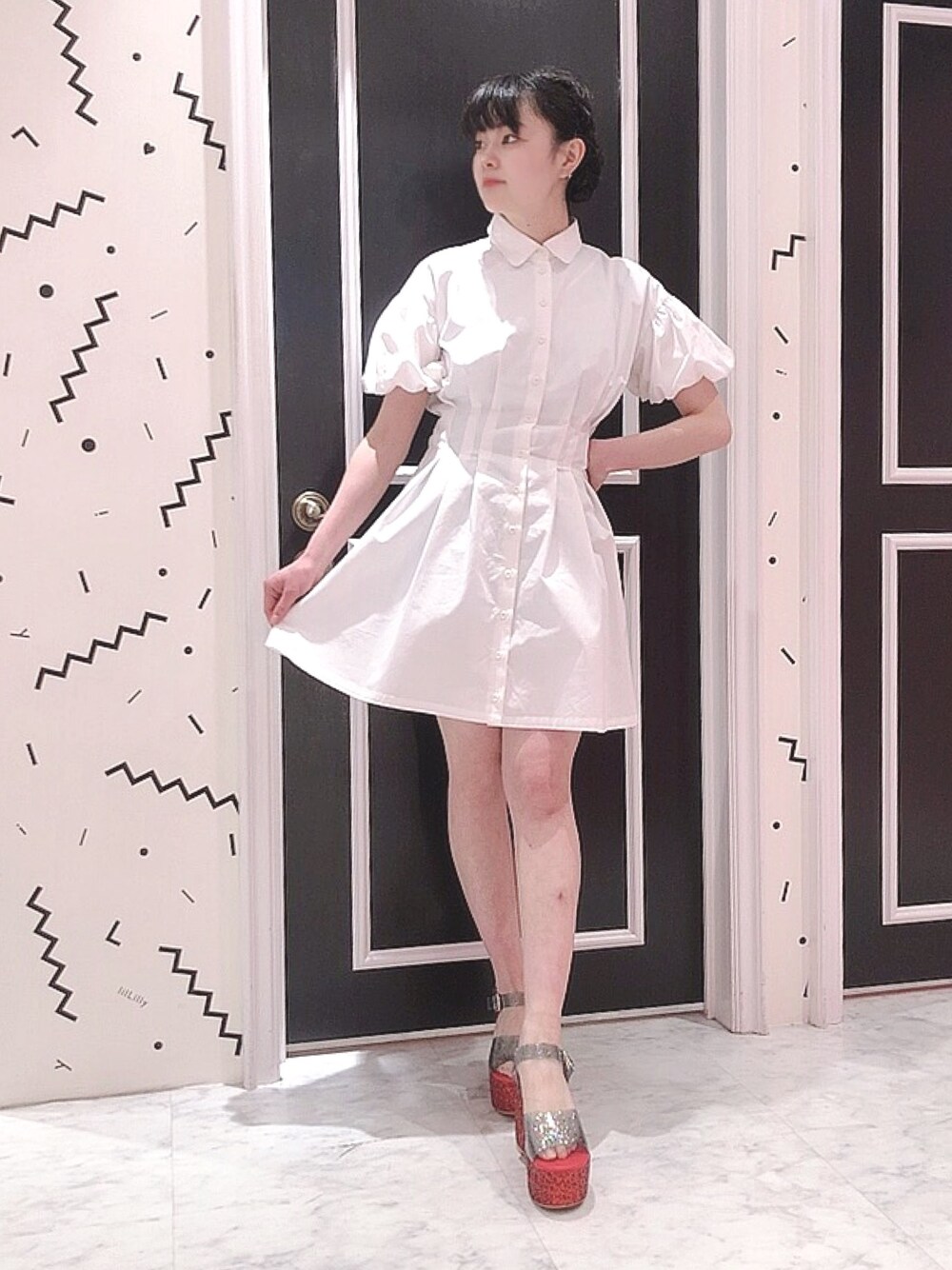 ゆずのワンピース「タックフレアシャツドレス」を使ったコーディネート
