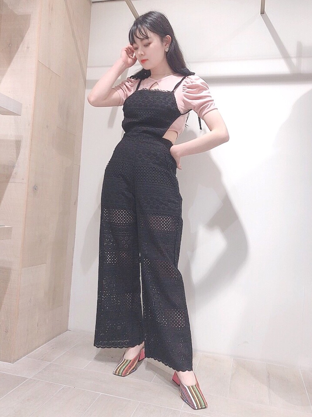 少しクールな気分の日にブラックのオールインワンでお出かけは🙆🏻♀️ですね💕 レースから脚元が透けるデザインもとても夏らしくてかわいい一着です❤︎❤︎