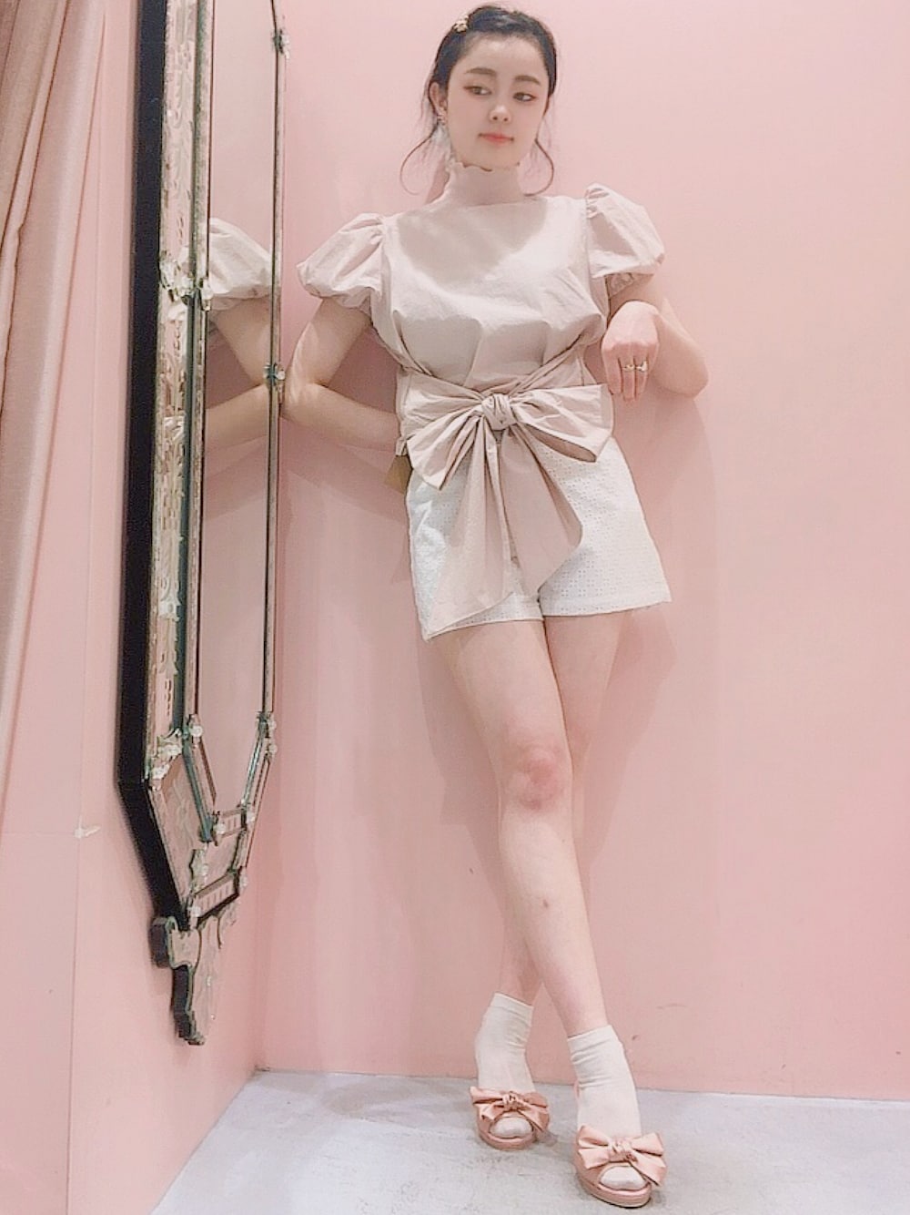 淡いピンクとホワイトでまとめた甘いコーデは毎シーズンしたくなります💭💕 リボンのボリュームたっぷりのトップスはシンプルなのにデザイン性があるのでコーデの主役に大活躍です!☺️