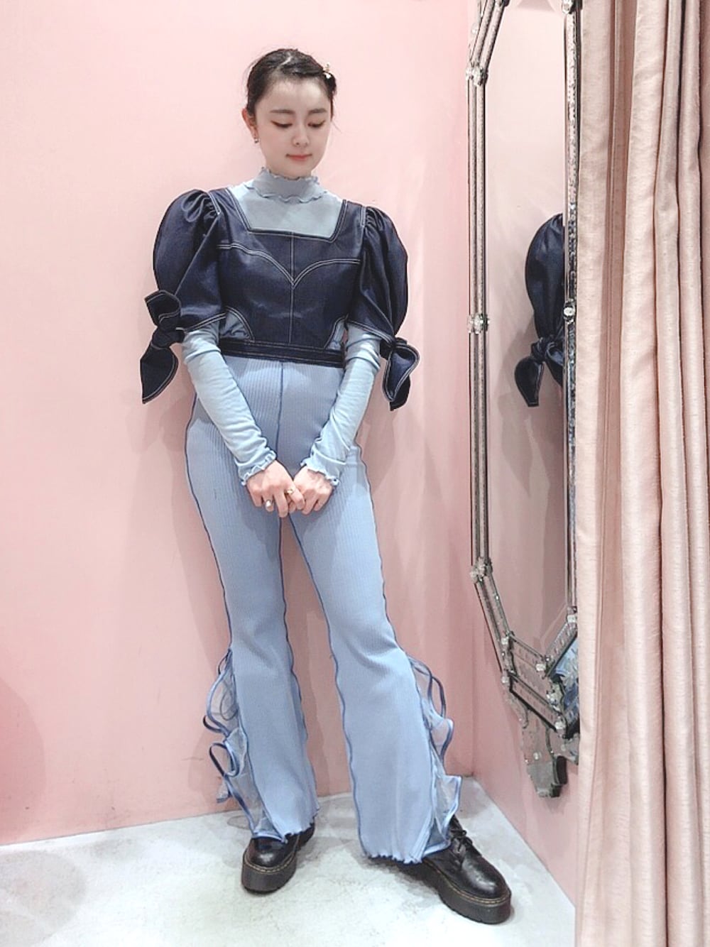 BLUEブームでワントーンコーデにも挑戦してみました😊 デニムトップスは丈感がちょうど良くて脚長に見せてくれるの嬉しい✨