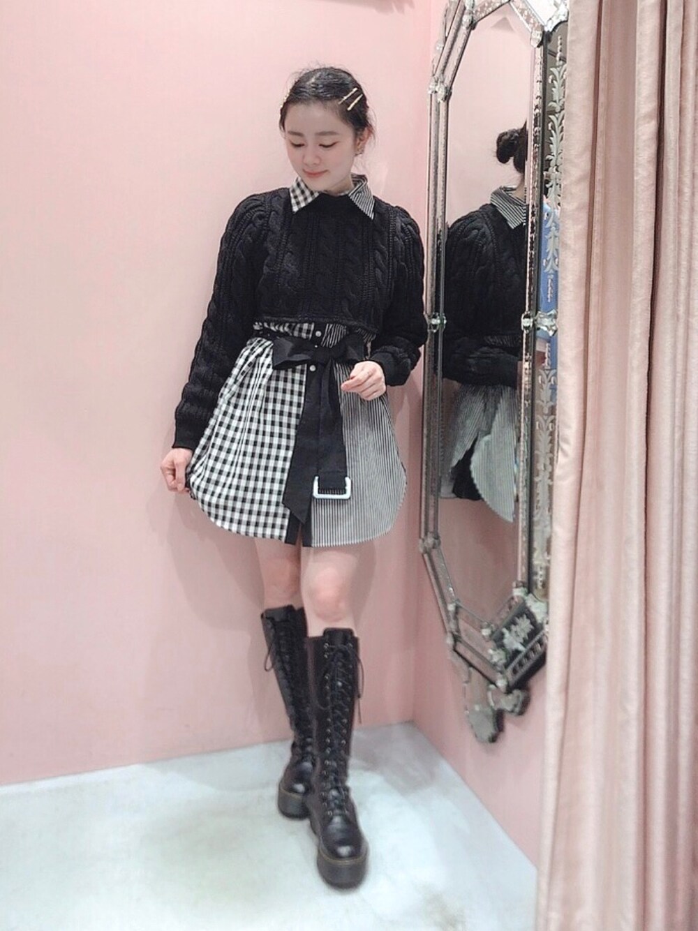 シャツワンピースにニットレイヤードが今年らしくてお気に入りのコーデです❤︎