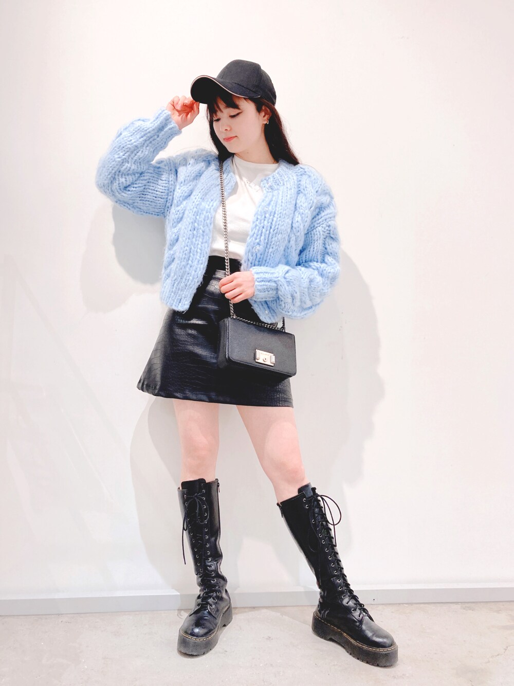 ガーリーコーデにキャップを合わせるのが好き🤍 BLUEを差し色にするとちょうどいい甘さでお気に入りコーデ完成✨