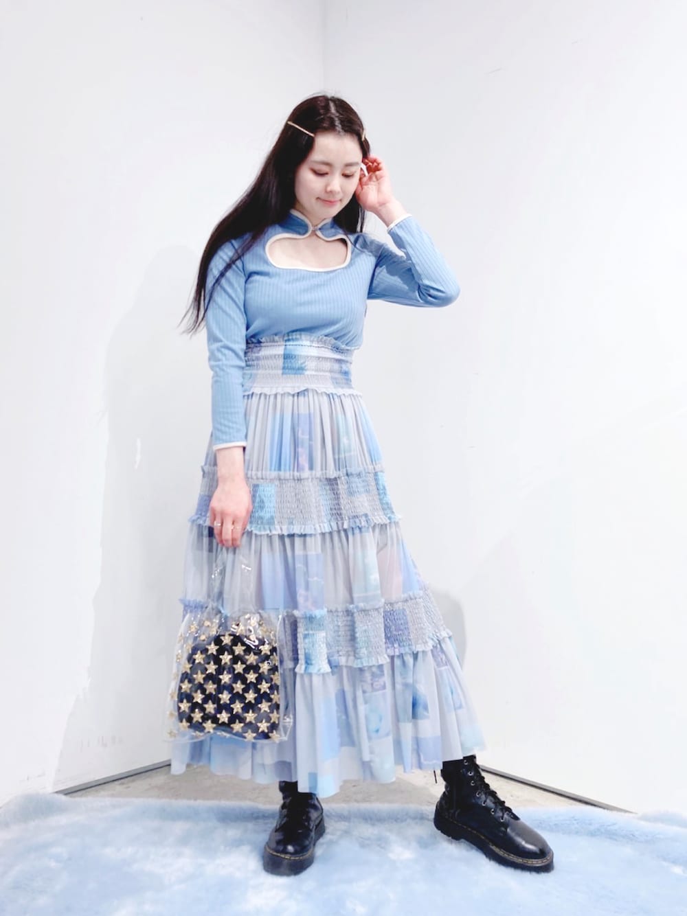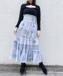 BLUEブームなので、バックと靴以外はBLUEでまとめました👗💙 チュールにオリジナルプリントが施されたスカートがとってもお気に入り!