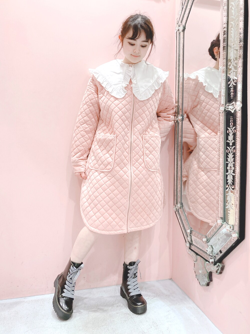 ピンクのノーカラーコートから襟を出して甘さたっぷりのコーデが完成🤍💗 わたしの大好きなレースアップブーツはチェックのリボンがお気に入り☺️