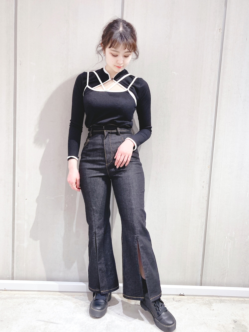 デニム好きにはたまらない綺麗なシルエットが魅力のフレアパンツ🙆🏻♀️✨ トップスはヘルシーな肌見せを楽しめるので春に大活躍の予感…🤍💭