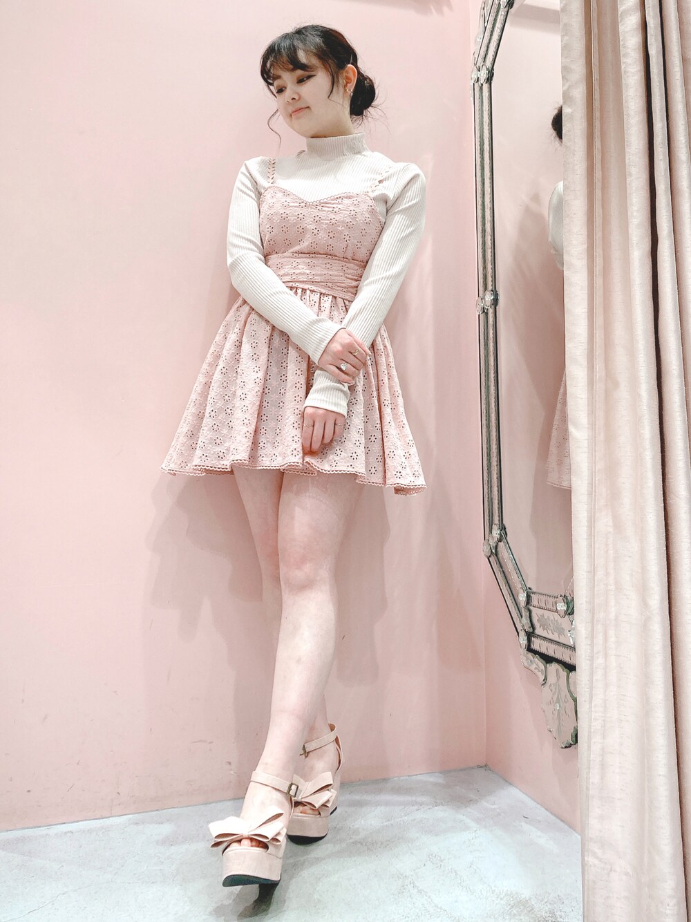 淡いカラーでまとめたガーリーなコーデ🎀 コットンレースのチュニックは155cmの私だとミニワンピースで楽しめました🙆🏻♀️