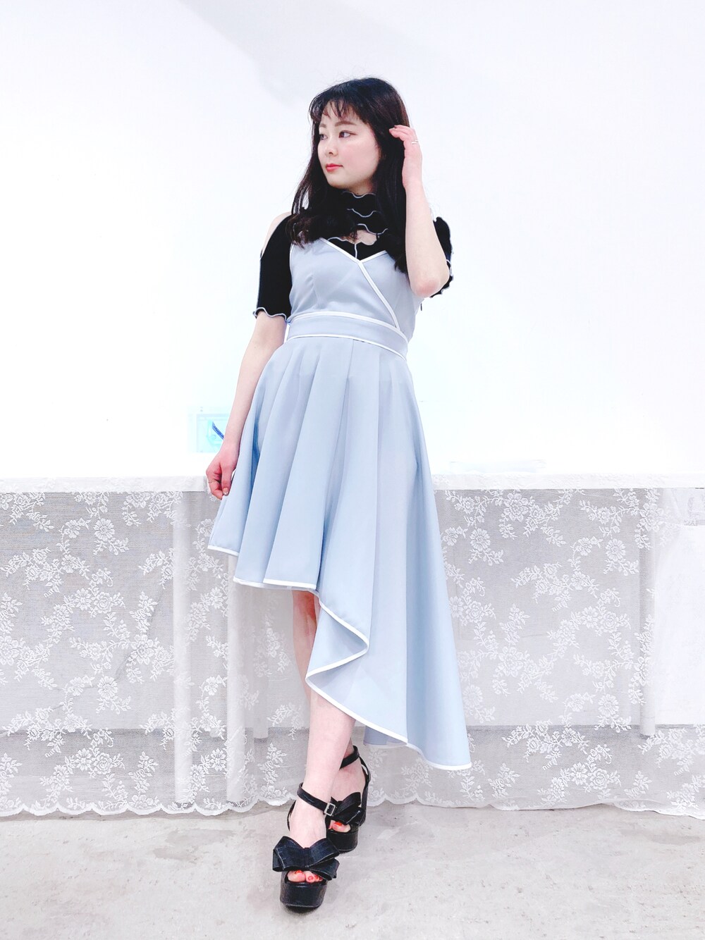 ゆずのワンピース「アシンメトリーパイピングドレス」を使ったコーディネート