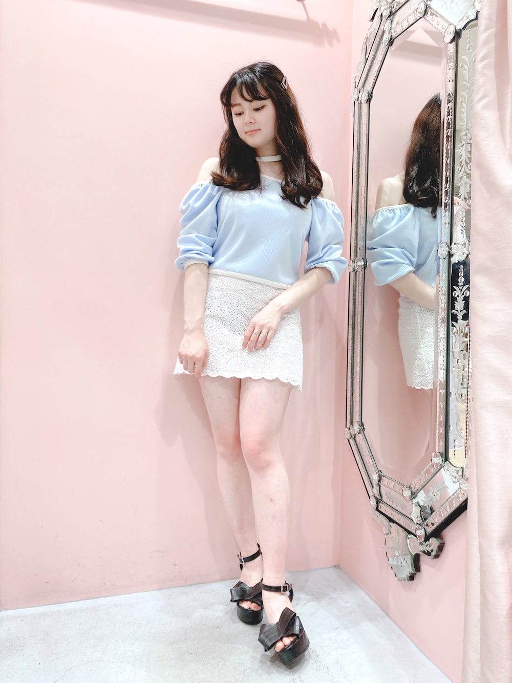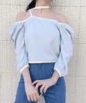 BLUEコーデがマイブームです👒👗 オフショルとしても着用可能なトップスは程よい肌見せがお気に入りポイントです🤍