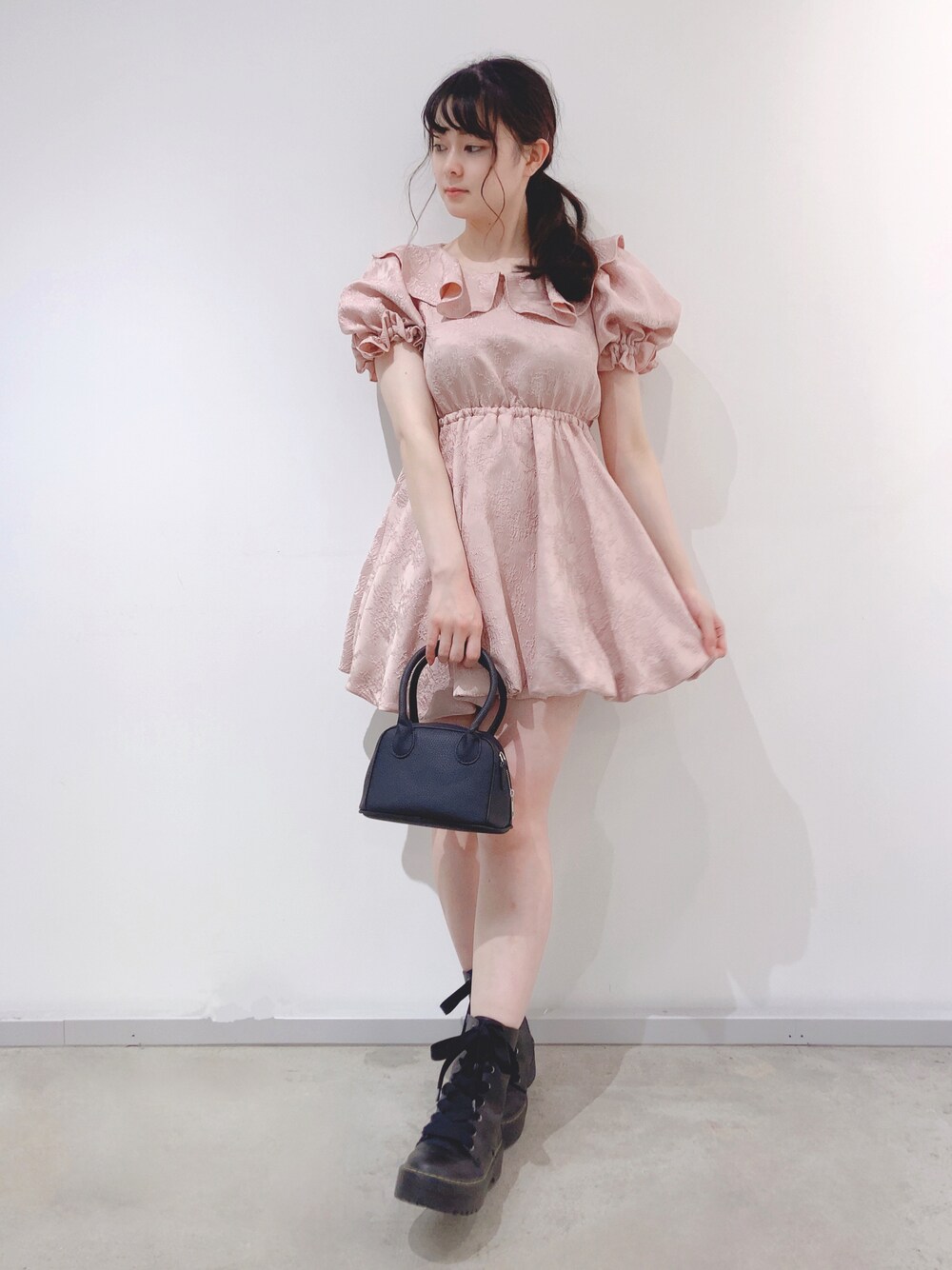 ピンク×ブラックで甘い大人コーデにまとめました💗 painのワンピースは今すぐ、そして秋口まで楽しめるジャガード素材でお気に入り☺️