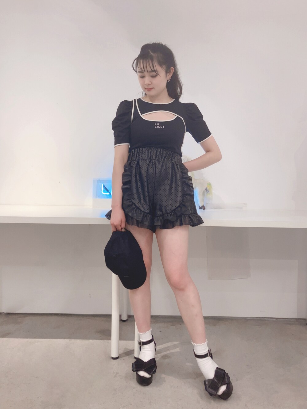 オールブラックコーデ🖤🖤🖤 新作のトップスのカジュアル×ガーリーなデザインがどストライクです😳 袖のパフスリーブのボリュームがちょうどいい!