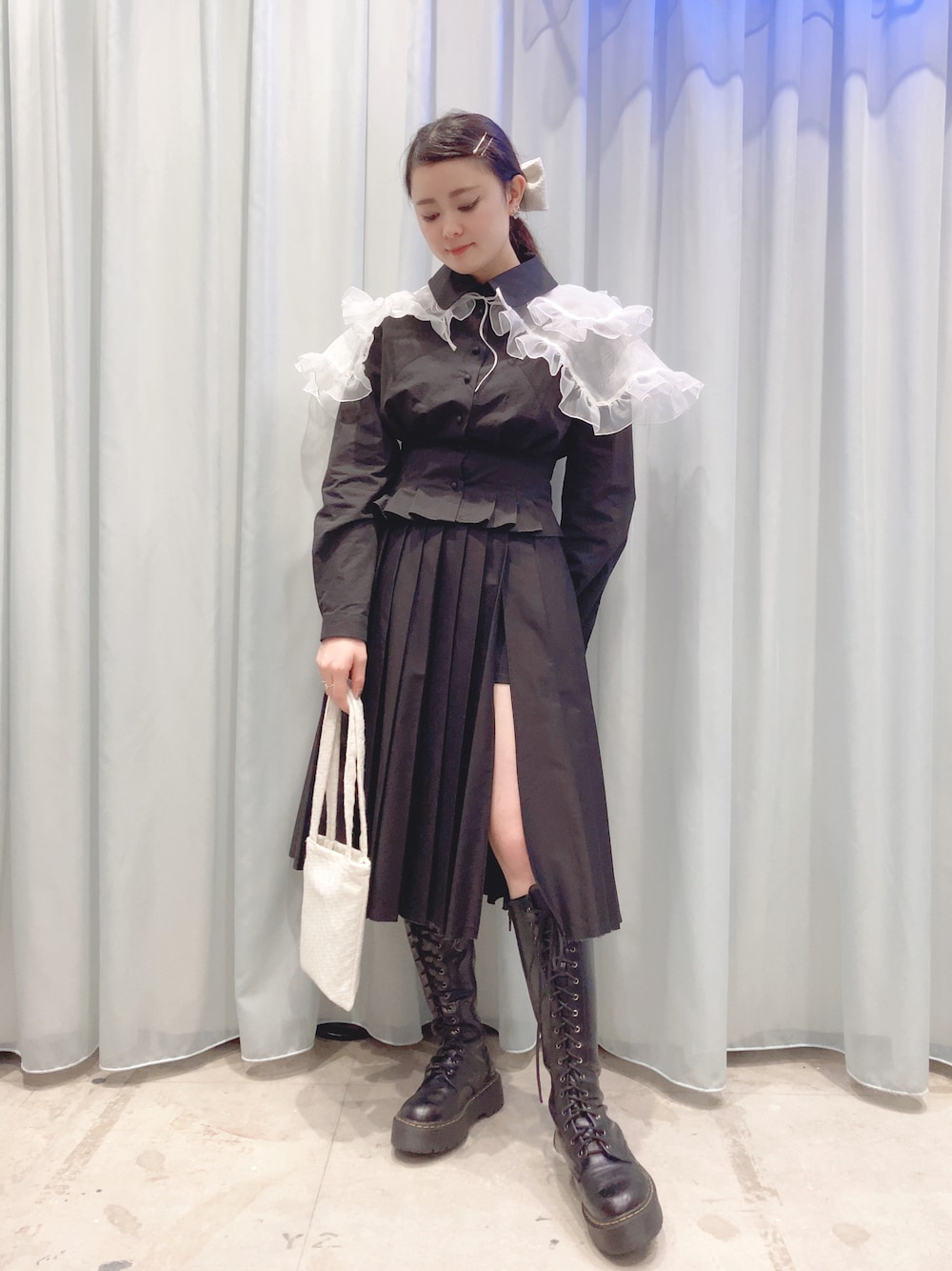 オーガンジーの襟に一目惚れしたブラウス…🫶🏻 プリーツスカートのスリットもちょうど良く大人っぽくて好き!☺️