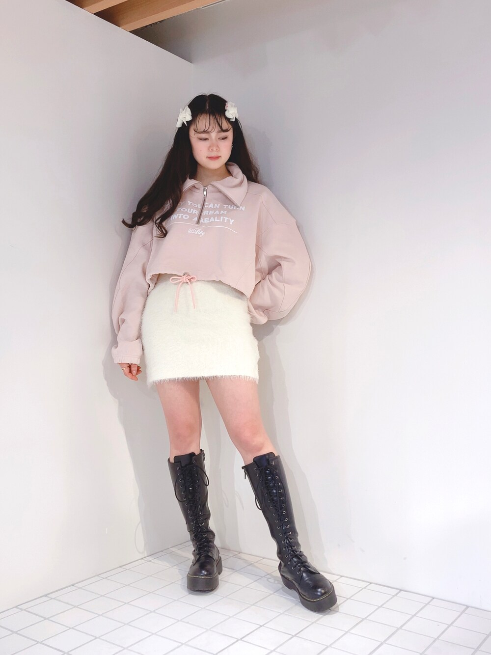 ゆずのブーツ「レースアップロングブーツ」を使ったコーディネート