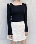 ゆずのTシャツ/カットソー「ショルダーカットリブトップス」を使ったコーディネート