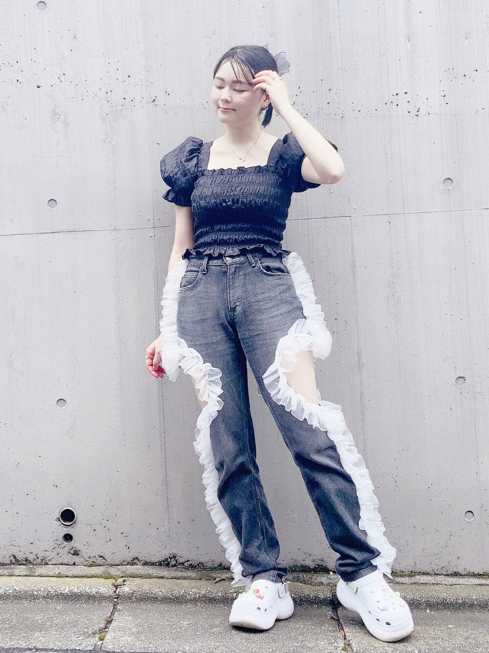 限定のデニムをGETしました👖✨ ブラックのトップスと合わせてモノトーンコーデです🤍🖤