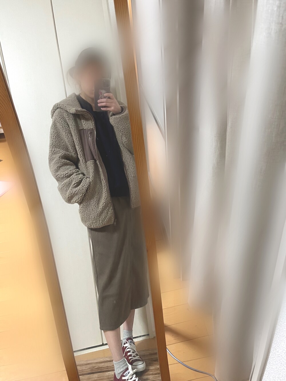 お久しぶりの投稿👗 大好きなカジュアルコーデにスカート💗 スウェットはUNIQLOのメンズがちょうどいい😄