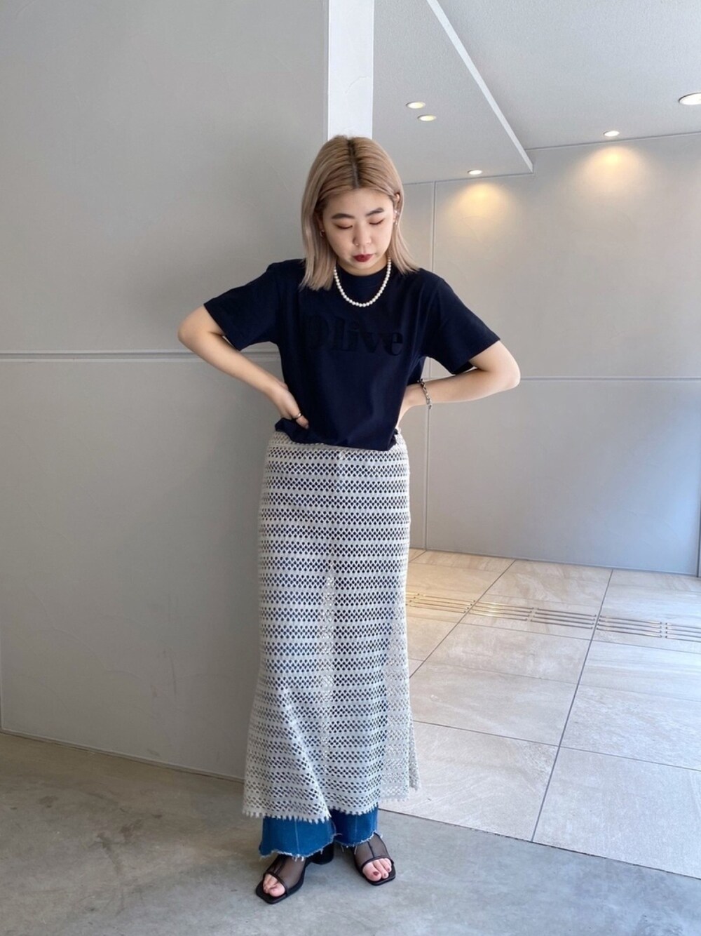 クロシェレースのスカートはペチコートが別々になっています! デニムとレイヤードするのがおすすめ! Instagram/@yuzu_lemage