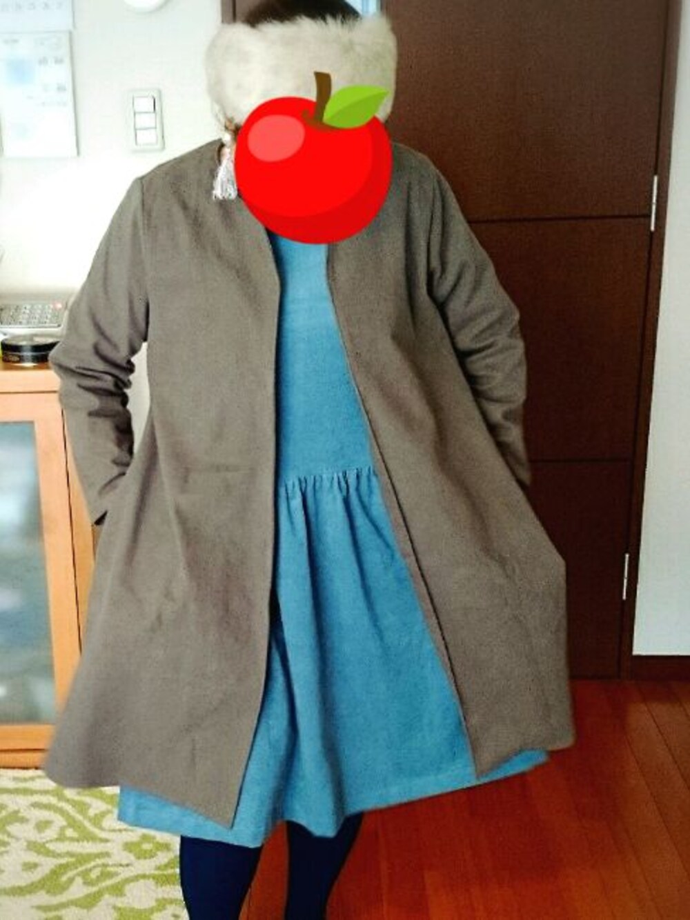 後輩に作ってもらったロングフレアコートとギャザー切り替えワンピースに自分で作ったBEAMS風、木馬リボンのファーヘアバンドを合わせてみました♪