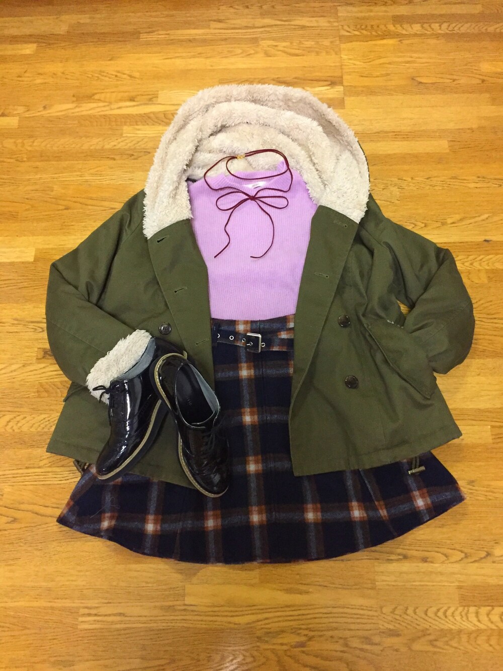 チェックスカート💚 今年も秋は可愛いチェックが流行ってるので💕オペラシューズもとってもお気に入りです💁🏼