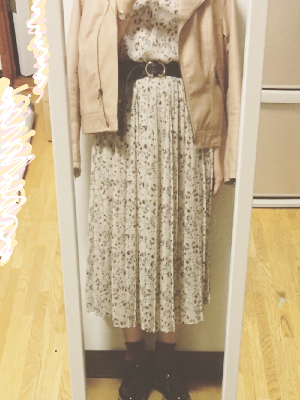 花柄ワンピース×ライダースコーデ💐 ・ ・ 夏にとっても流行った花柄ワンピースとライダースジャケットを合わせてみました💞💞 ベルトを巻くことで、脚も長く見えて、コーデにメリハリもできますね😉😉 身長が小さめな人は絶対にベルトを巻くことがオススメです! 差し色としてボルドーカラーを入れることで、グッと秋っぽさが増します👍🏻🍁