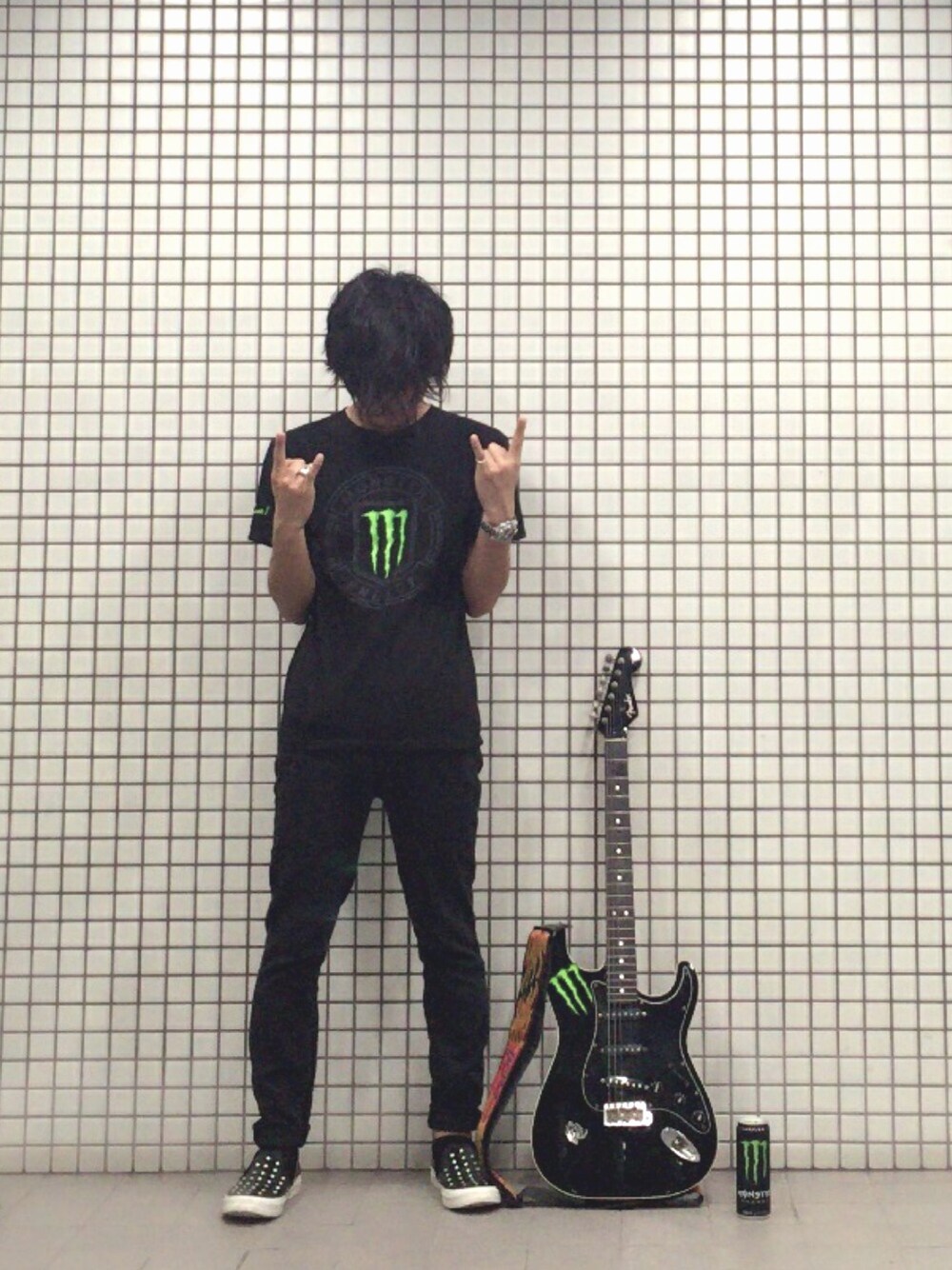 ボロボロのギターもって スタジオいってきます♪ 本日は作曲ー と言う事で、楽しみdeath コーデは ここまできたら、スポンサーになってくれ。 って言う気持ちですね。 monsterをこよなく愛しております。
