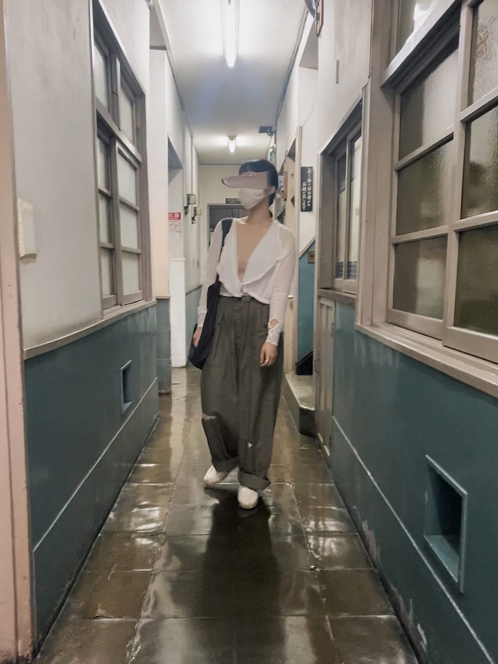 100年ほど前のフランスアンティークブラウス。とミリタリーパンツ 古ければ古いほど良い。