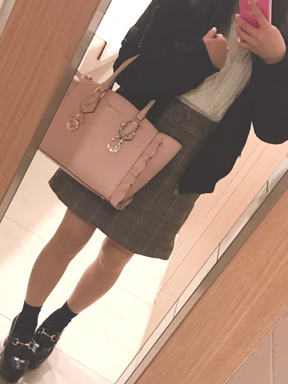 ちさとのスカート「ベルト付きチェック台形スカート」を使ったコーディネート