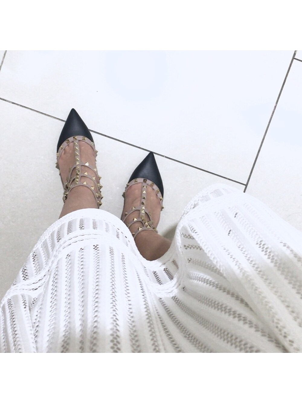 yのパンプス「Valentino Rockstud leather pumps」を使ったコーディネート