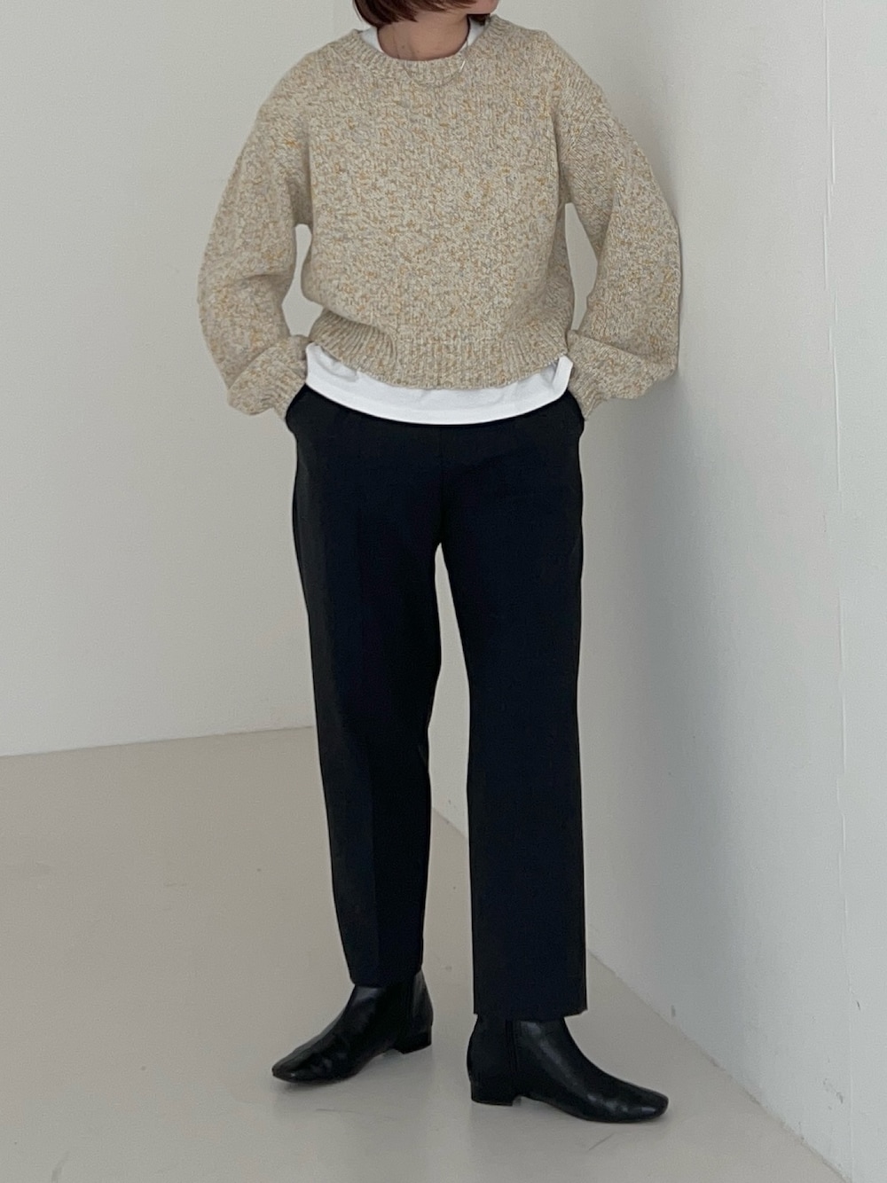 -------------------------------------------------- ・身長163cm/骨格ナチュラル/イエベ秋 ・普段サイズ 👚M/👖M/シューズ24.5 -------------------------------------------------- 【サイズ感】 トップス:軽くて暖かいニット。黄色ベースのミックスカラーが可愛いです! ジャスト丈なので、1枚でもレイヤードでも着回しやすいです◯ ボトム:オンオフ兼用で着回せるテーパードパンツ!真っ黒すぎないカラーが手持ちに加えやすいです。 【コーディネートポイント】 ミックスカラーが目を惹くニットを、きれいめカジュアルな印象でスタイリングを組んでみました!! 白Tをレイヤードするだけで、こなれ感が出るのでぜひ真似して下さい^^