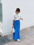 ブルーのスカートが主役のコーデ🐬 小さめロゴが可愛いTシャツはメンズアイテム! Instagram…✈︎__yuma17