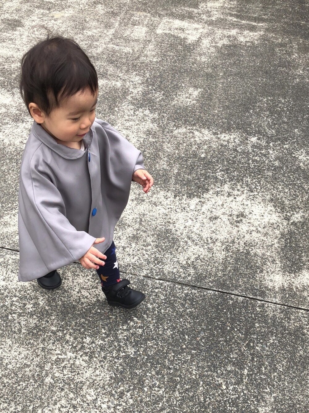 ボタンは青にしました🔵ポンチョと子どもの相性の良さ◎