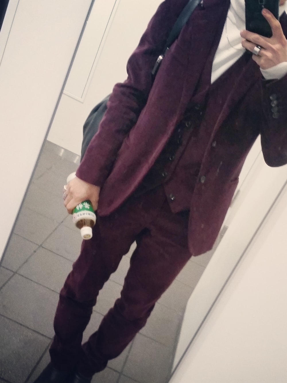 ジョンローレンスサリバンのCANNABIS別注の コーデュロイの3ピースのセットアップスーツです。 温かいですし、ワインレッドの色合いがかなり好みです\(^^)/ あとは、 最近はまってる特茶をアップしました(笑)