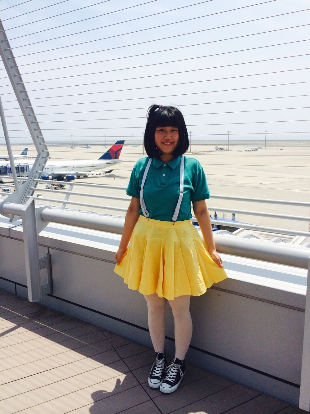 ポロシャツ→古着 サスペンダー→jouetie スカート→wego くつ→コンバース セントレア〜
