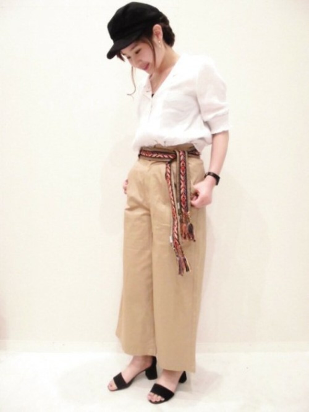 ヨウリュウシャツは柔らかい素材なので着心地抜群です♪ シンプルになりすぎないように、ベルトで柄を入れて 他の小物は黒でまとめて色をしめています☆