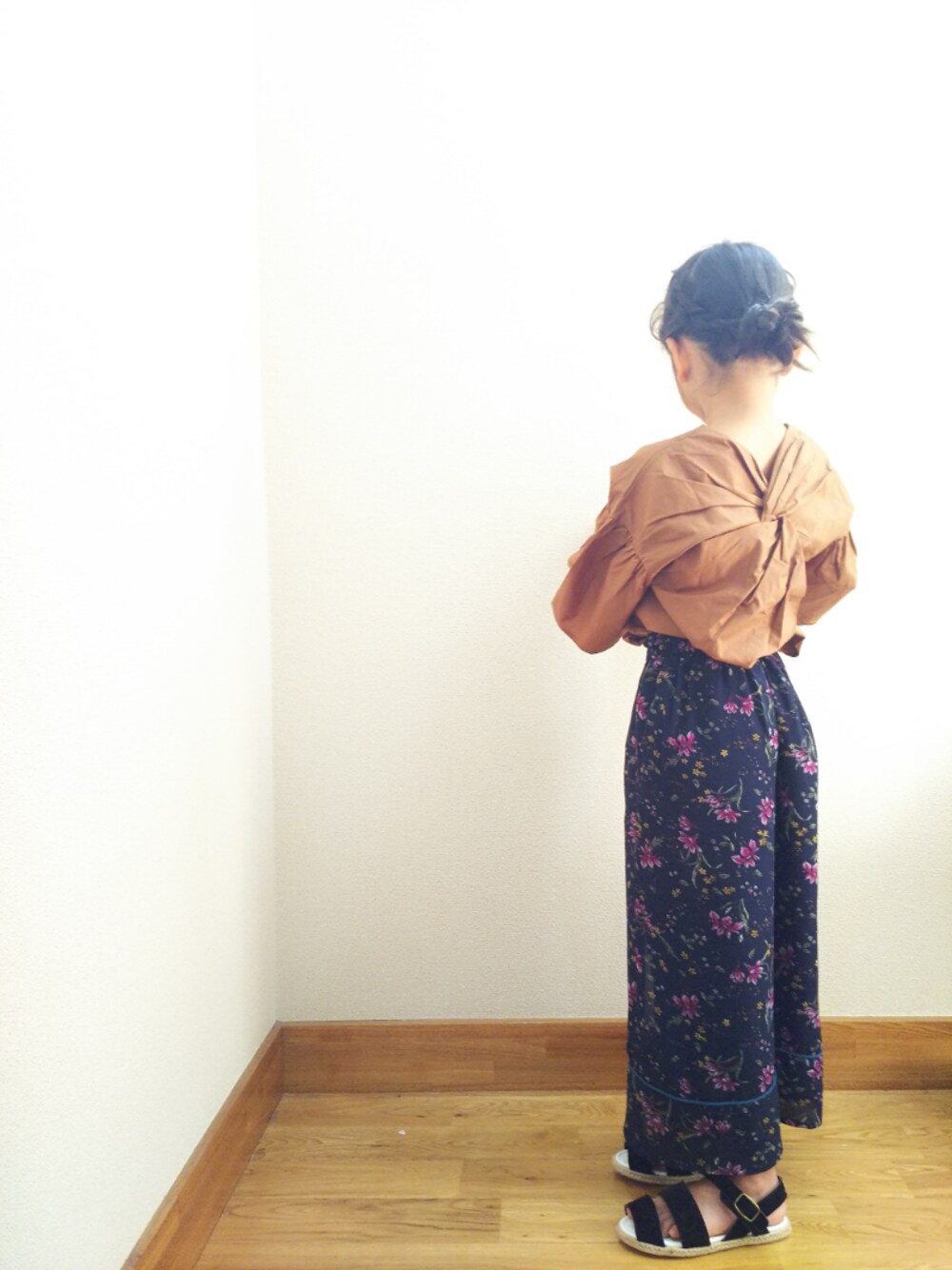 right-onのこのパンツと以前アップした赤のスカートの2点で税抜3000円でget💕 プティのトップスはサイズが残ってなくて大きめの130を着用。このトップス、後ろ姿も可愛い❤ ご覧いただき、ありがとうございました🍀