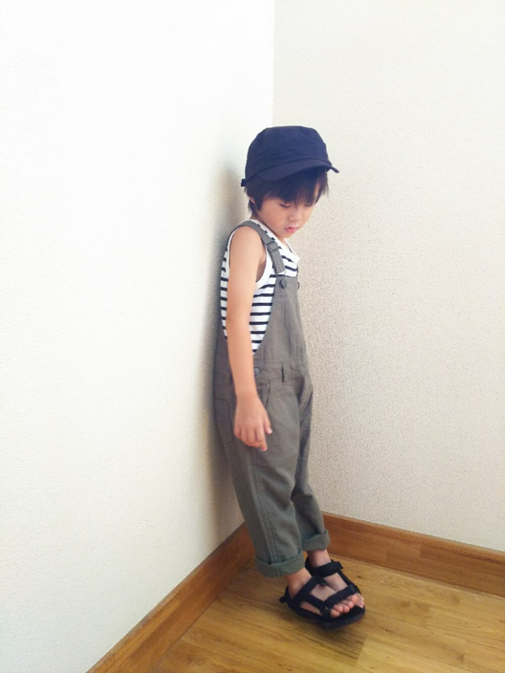 次男、初サロペコーデ✨ 男の子のサロペットコーデ、大好き💓♥️❤️ お洋服は全部、お姉ちゃんのお下がり😅 『これ、女の子のやーん⤵️⤵️』ってかなり渋々に着てました😌 お兄ちゃんお下がりはカッコいい❤️って喜んで着てくれるんだけどな😅