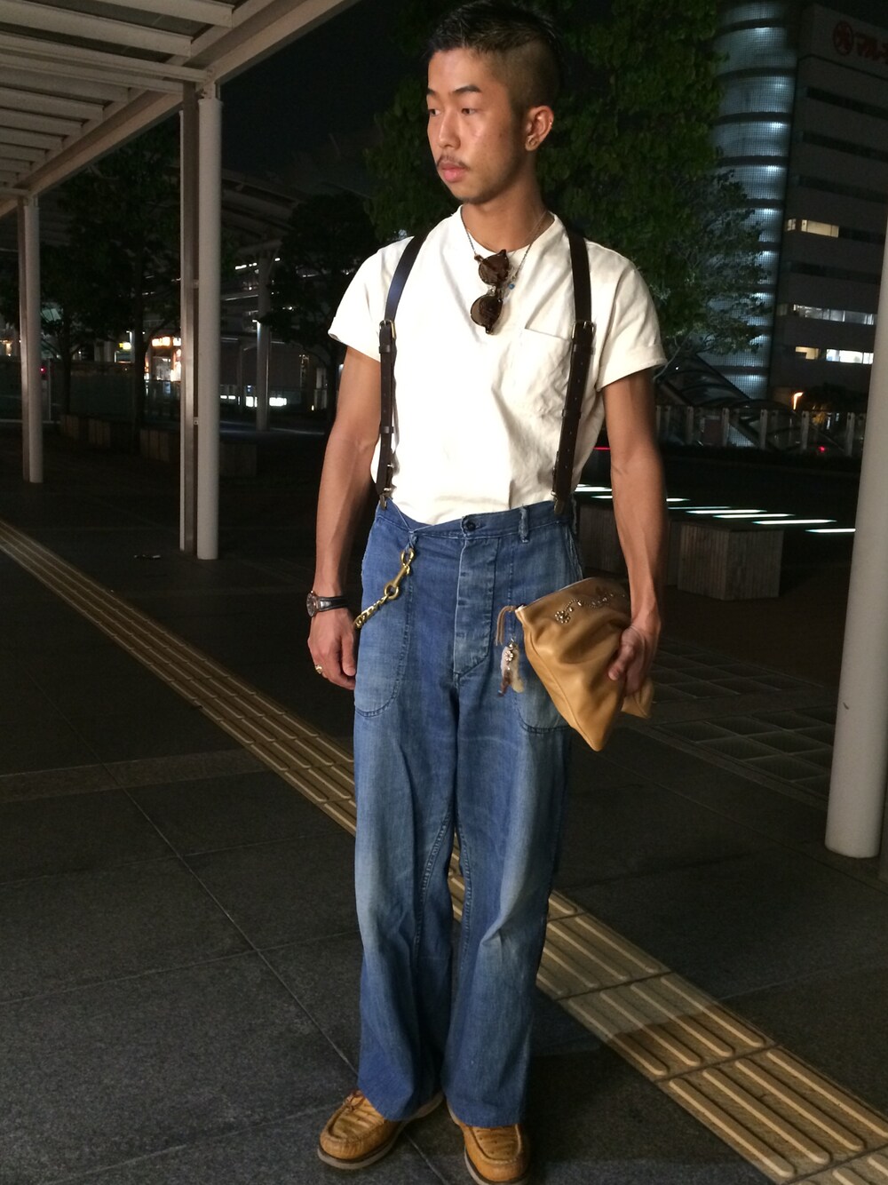 ポケTee→CAMBER ジーンズ→40's Vintage "US Navy" ブーツ→RUSSELL MOCCASIN サスペンダー→Suspenders ビートニクスタイルを意識。 ブーツとバックの色は小物でよく選ぶ 好きな色なんです。