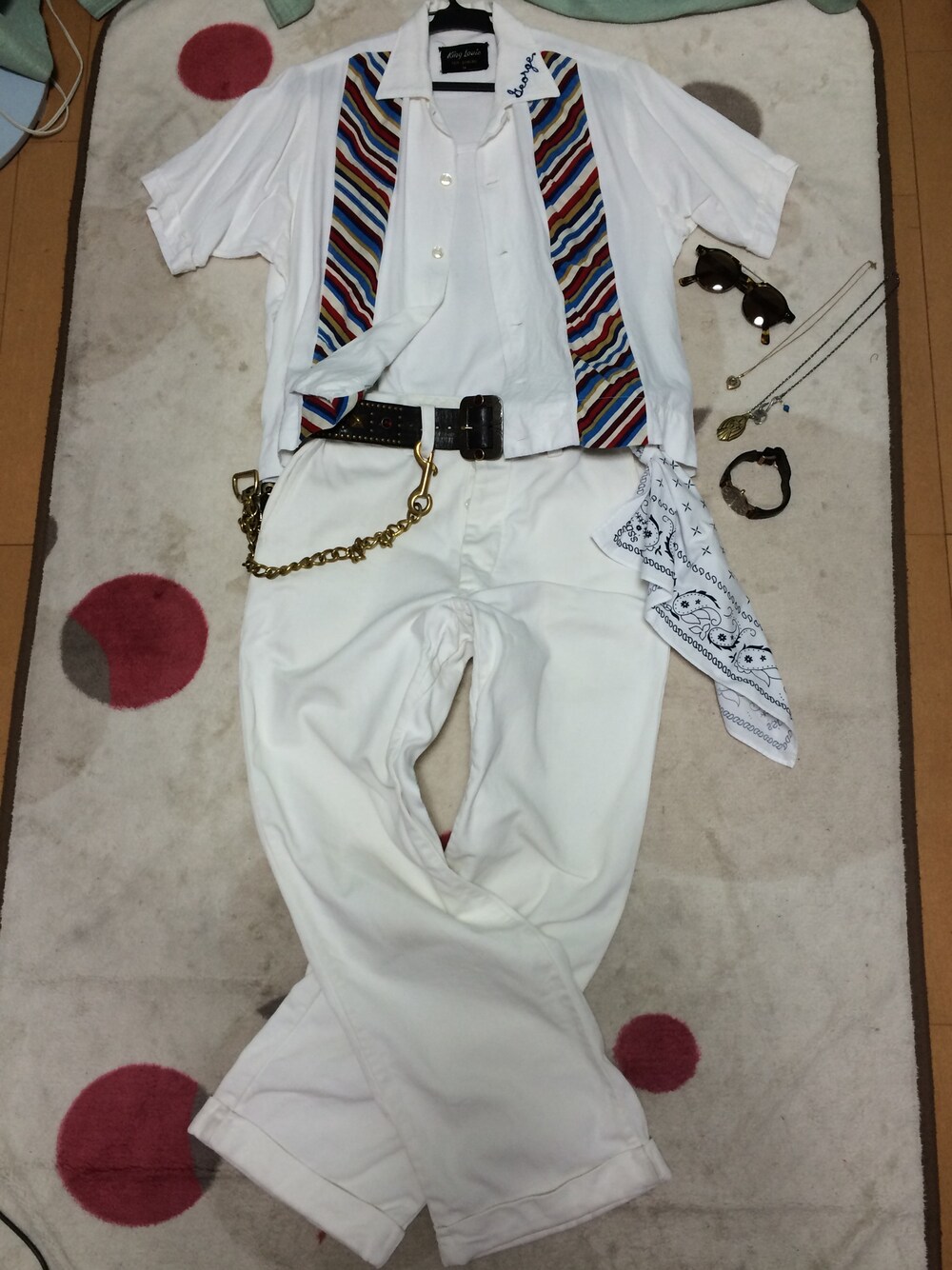ボーリングシャツ→Vintage 60's タンクトップ→UNIQLO ピケパンツ→Vintage 40's バンダナ→FUCT 白!