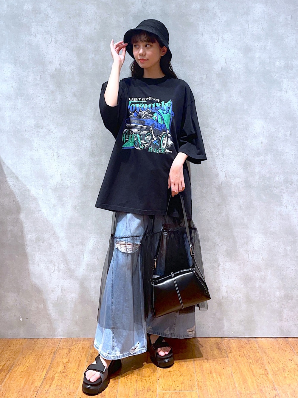 ご覧頂きありがとうございます👏🏻 先輩が着てたTシャツ×チュール×デニムの 合わせ方が可愛すぎたので、真似しました、🫣💓 透けて見えるデニムのダメージ具合も可愛いです〰️🫶 ┈┈┈┈┈┈┈┈┈┈ Instagram▷▶▷〖@kth__1o 〗 .st▷▶▷〖kotoha〗 でみてみてください👍🏻 ́-