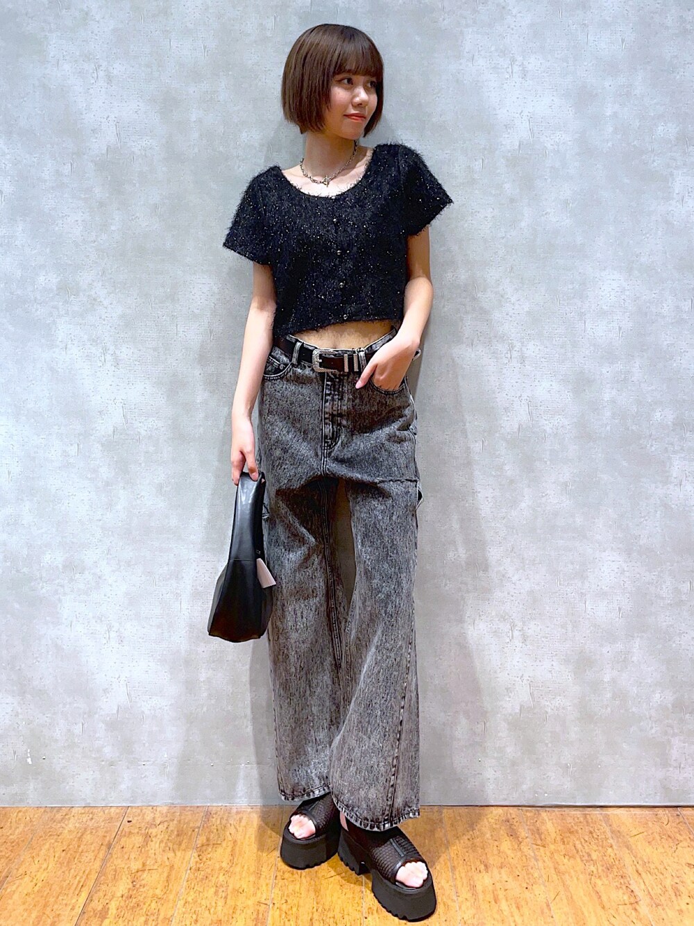 KotohaのTシャツ/カットソー「ラメフェザーショートTOPS」を使ったコーディネート