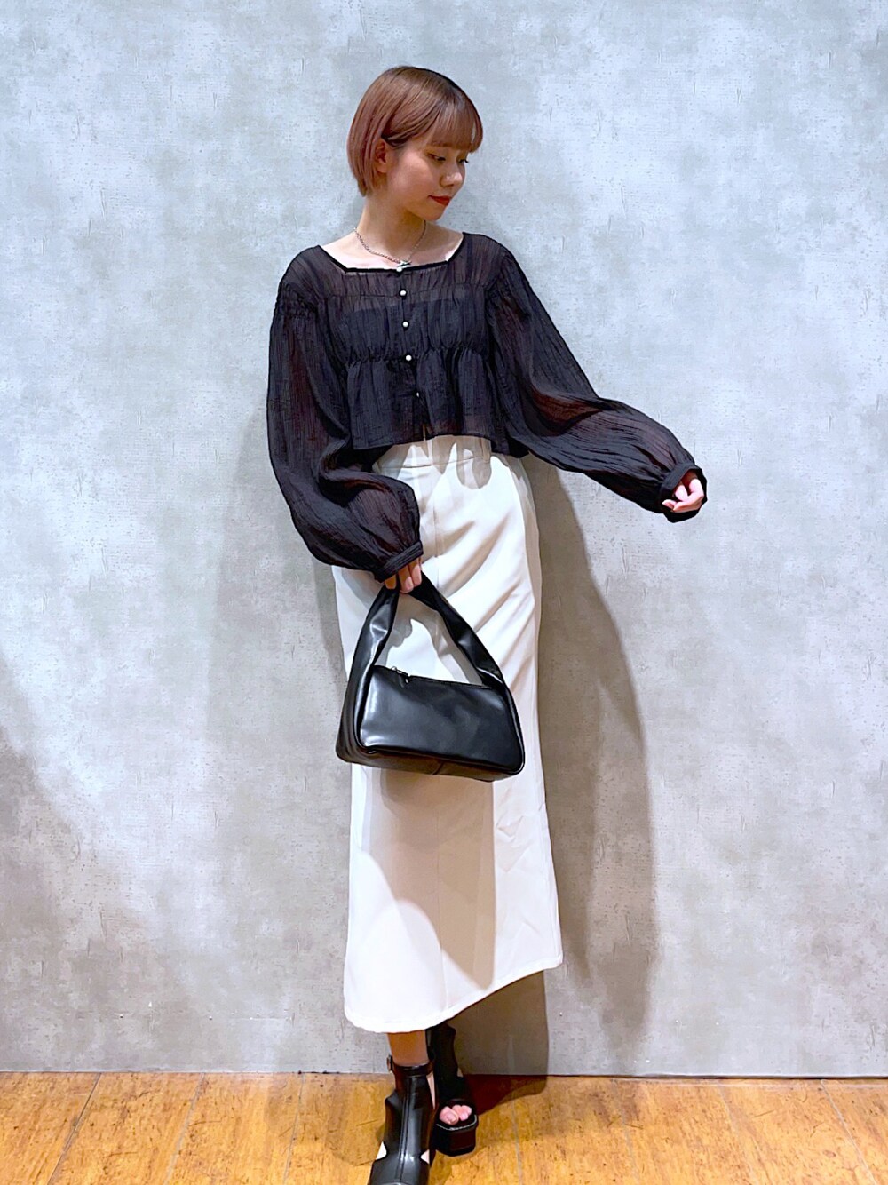Kotohaのシャツ/ブラウス「シャーリングミニ2WAYブラウス」を使ったコーディネート